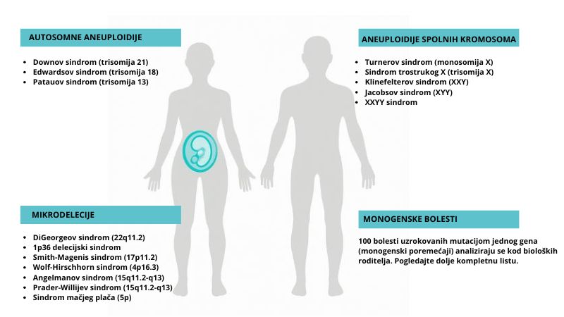Genetski poremećaji nastaju kao posljedica neželjenih promjena u genomu koje se događaju tijekom začeća. VERAgene test detektira četiri glavne skupine genetskih stanja: